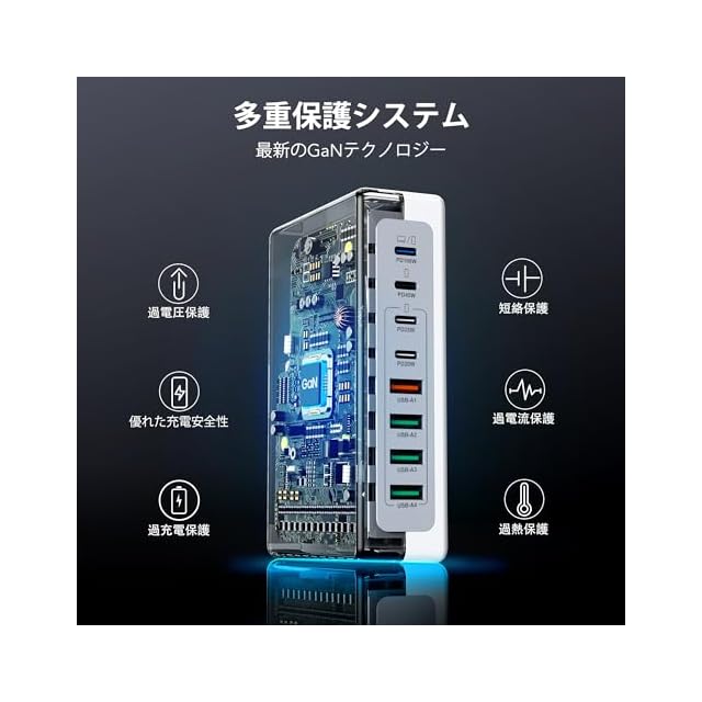 ⚡【GaN急速充電器】PD100W GaN PD充電器はGaNチップを使用しており、充電効率と性能を最大90%向上させることができます。革新的なスタッキング設計とアップグレードされた回路基板構造により、最新の充電器が小型化されました。 USB C 充電器は、温度保護、過電流、過電圧、過充電、過負荷、過熱、短絡保護といった強化された保護機能を備えています。